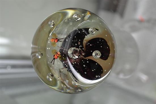 ART GLASS PAPER WEIGHT WITH FLOWER AND BEE DECORATION