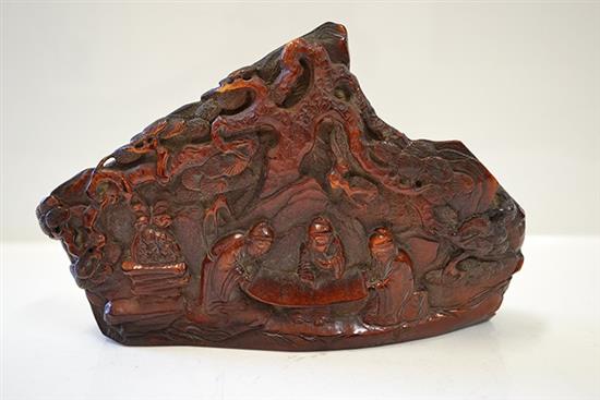 CHINESE HORN BOWL WITH CARVED BAT DECORATION