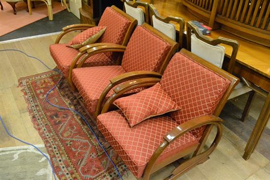THREE DECO STYLE TEAK ARM CHAIRS