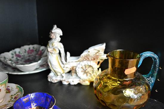 PART SHELF INCLUDING GLASS JUG, CERAMIC PLATTER ETC