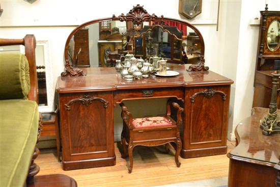 A VICTORIAN MAHOGANY MIRROR BACKED PEDISTAL SIDE BOARD