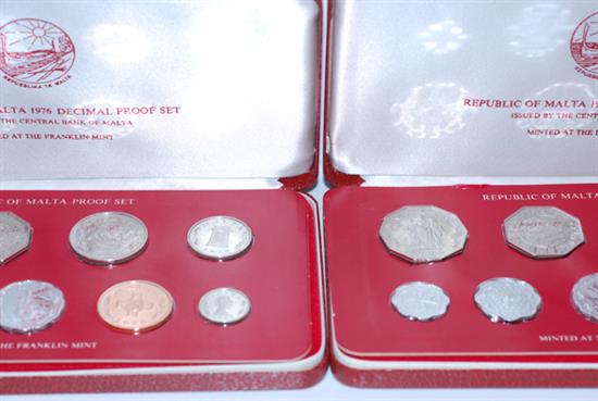 TWO BOXED SETS REPUBLIC OF MALTA COIN PROOF SETS WITH PAPERS TOGETHER WITH TWO SETS OF THE COINAGE OF PANAMA 1975, 1976 BOXED WITH PAPERS INCLUDING STERLING SILVER COINS FROM THE FRANKLIN MINT (1 - 4)