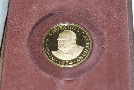 THE TURKS AND CAICOS ISLANDS 50 CROWN PROOF COIN IN 12CT GOLD COMMEMORATING THE SIR WINSTON CHURCHILL CENTENARY 1974, BOXED WITH PAPERS (7)