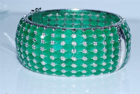 A HINGED BANGLE SET WITH EMERALDS TOTALLING 104CTS, IN SILVER