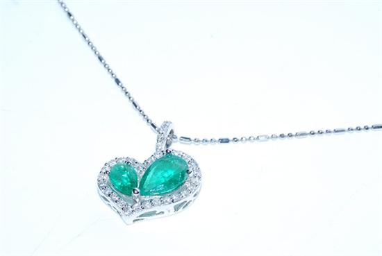 A HEART SHAPED EMERALD AND DIAMOND PENDANT IN 18CT WHITE GOLD, INDEPENDENT VALUATION AVAILABLE
