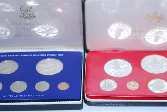 A CAYMAN ISLANDS 1976 BOXED PROOF SET OF COINS WITH CERTIFICATE FROM THE ROYAL CANADIAN MINT TOGETHER WITH TWO PROOF SETS FROM THE FRANKLIN MINT BRITISH VIRGIN ISLANDS, PAPUA NEW GUINEA BOTH 1975 BOXED WITH CERTIFICATES (20 - 21) (51)