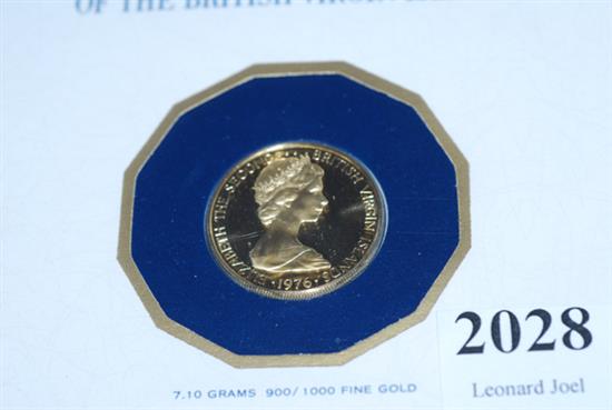A BRITISH VIRGIN ISLANDS ONE HUNDRED DOLLAR COIN 1976 IN 21CT GOLD FROM THE FRANKLIN MINT IN PROTECTIVE CASE WITH PAPERS (22)