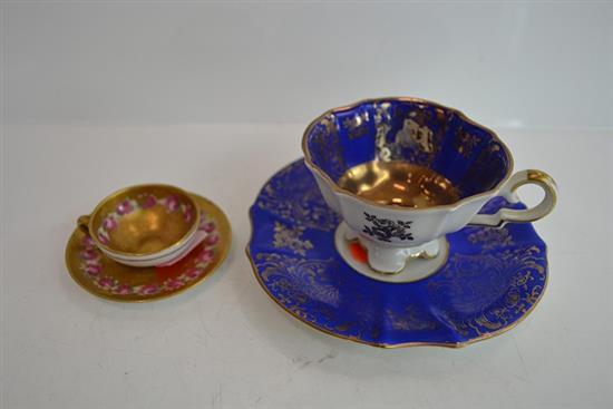 ROYAL DOULTON MINIATURE HEAVILY GILDED TEA CUP AND SAUCER PLUS ONE OTHER