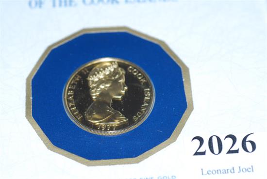 A COOK ISLANDS ONE HUNDRED DOLLAR COIN 1977 IN 21CT GOLD FROM THE FRANKLIN MINT PROTECTIVE CASE WITH PAPERS WITH PAPERS (54)