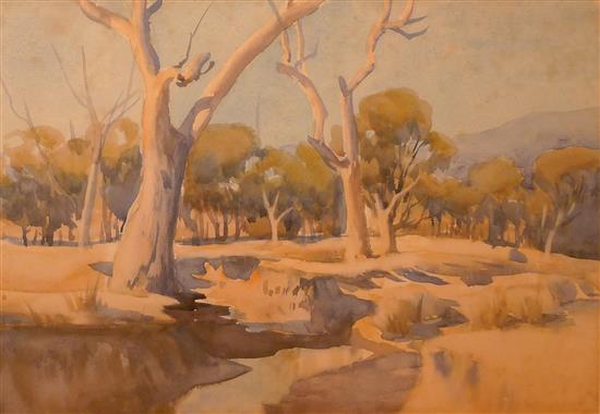 ERNEST BUCKMASTER, GUMS AT WARRACK, WATERCOLOUR, 34 X 50CM, UNSIGNED