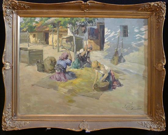ZSIGMOND PALNAGY, VIILLAGERS, OIL ON CANVAS, 59 X 79CM