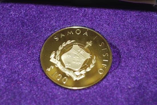 A WESTERN SAMOA 1977 ONE HUNDRED DOLLAR GOLD COIN TO COMMEMORATE SILVER JUBILEE OF QUEEN ELIZABETH II IN 22CT GOLD BOXED WITH CERTIFICATE (72)