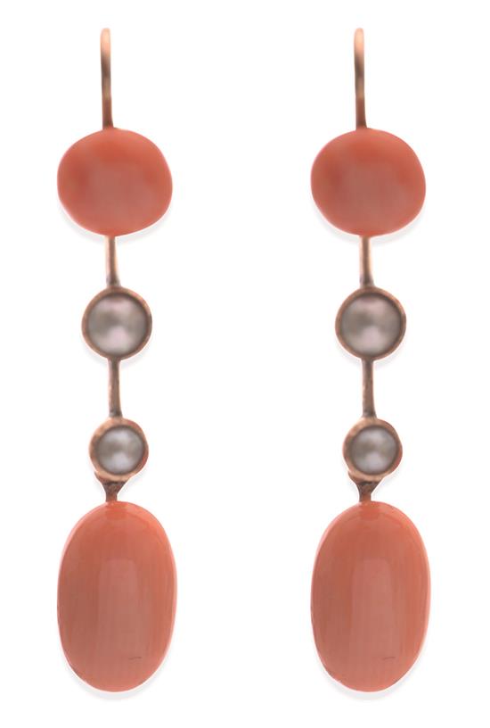 A PAIR OF EDWARDIAN CORAL AND SEED PEARL EARRINGS