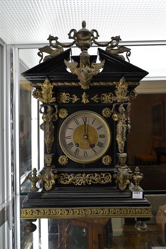 IMPRESSIVE FRENCH RAINGO FRERES ORMOLU FLORAL ADORNED BRACKET CLOCK WITH PORCELAIN INSET ROMAN NUMERALS, CIRCA 1840 (PENDULUM AND KEY)