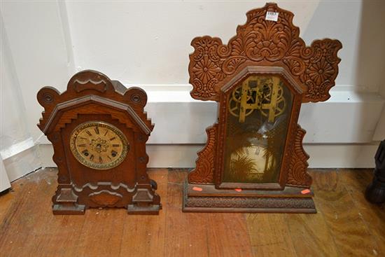 TWO ANSONIA WOOD CASED COTTAGE CLOCKS (INCOMPLETE, BOTH FAULTS)