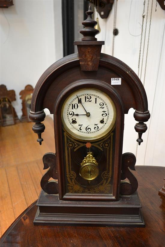 NEW HAVEN CLOCK CO. COTTAGE CLOCK WITH GILDED FLORAL DESIGN TO GLASS FACE (LOSSES TO SOME MOUNTS)