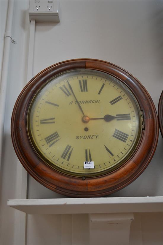 A. TORNACHI, SYDNEY, SINGLE FUSEE CEDAR CASED RAILWAY CLOCK