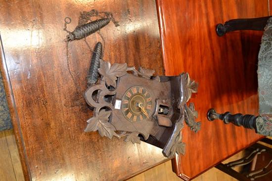 19TH CENTURY GERMAN WOOD CASED CUCKOO CLOCK WITH WEIGHTS