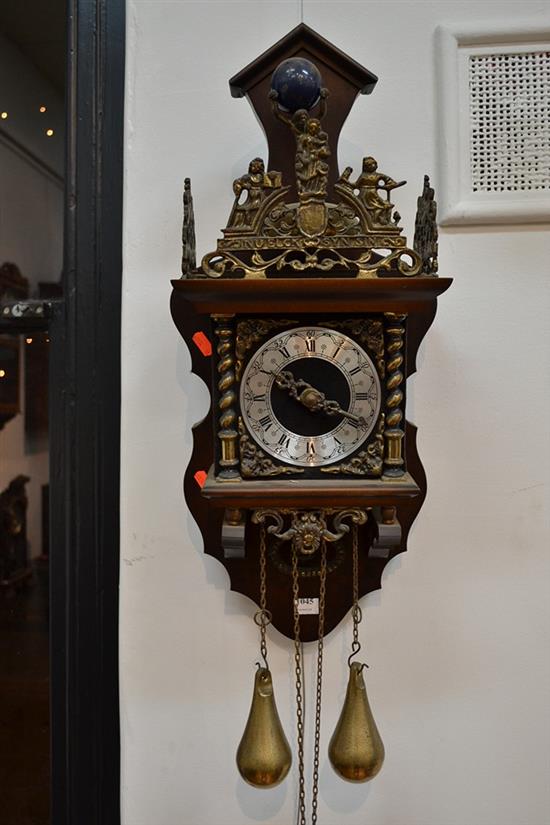 20TH CENTURY DUTCH ZAANDAM ZAANSE ATLAS WALL CLOCK WITH PEAR SHAPED WEIGHTS