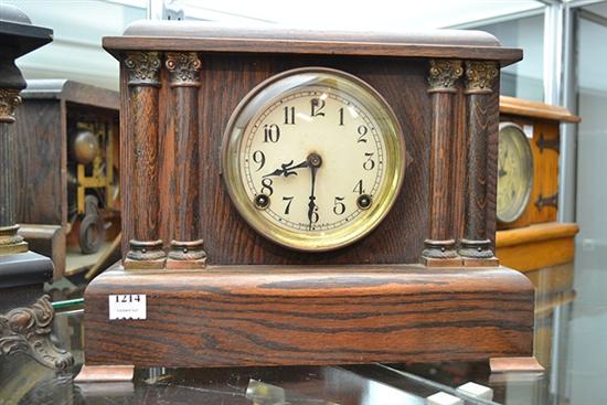 EARLY 20TH CENTURY AMERICAN MANTEL CLOCK WITH COLUMN MOUNTS (KEY, NO PENDULUM)