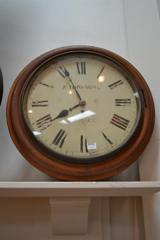 LARGE 19TH CENTURY A. TORNACHI, SYDNEY CEDAR CASED SINGLE FUSEE RAILWAY CLOCK (DIAL NUMERALS WORN)