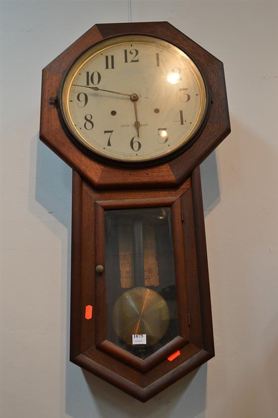 LATE 19TH CENTURY SETH THOMAS DROP OCTAGON WALL CLOCK (PENDULUM AND KEY)