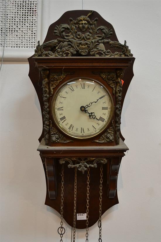 20TH CENTURY DUTCH GILT METAL MOUNTED WALL CLOCK (PENDULUM, NO WEIGHTS)