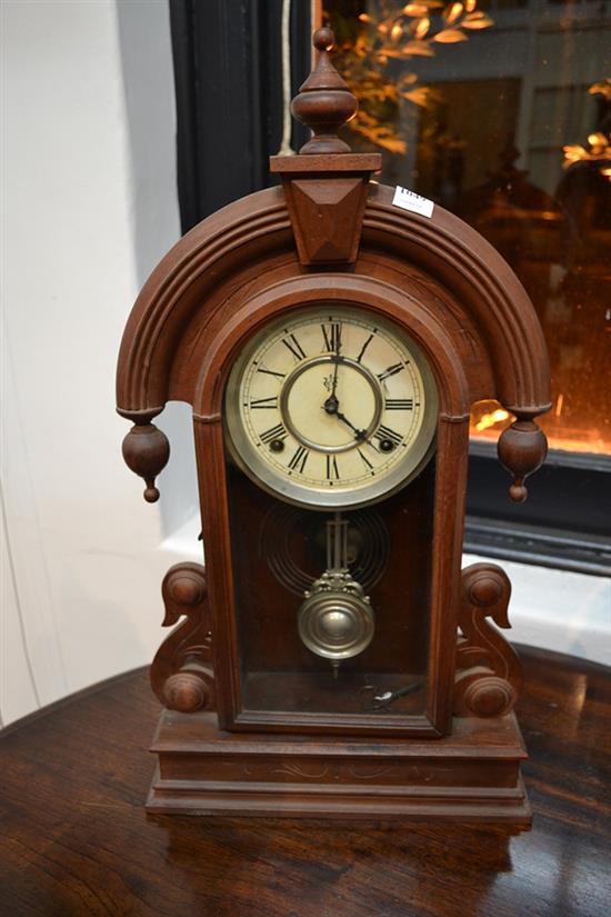 AMERICAN WOOD CASED COTTAGE CLOCK (KEY, PENDULUM)