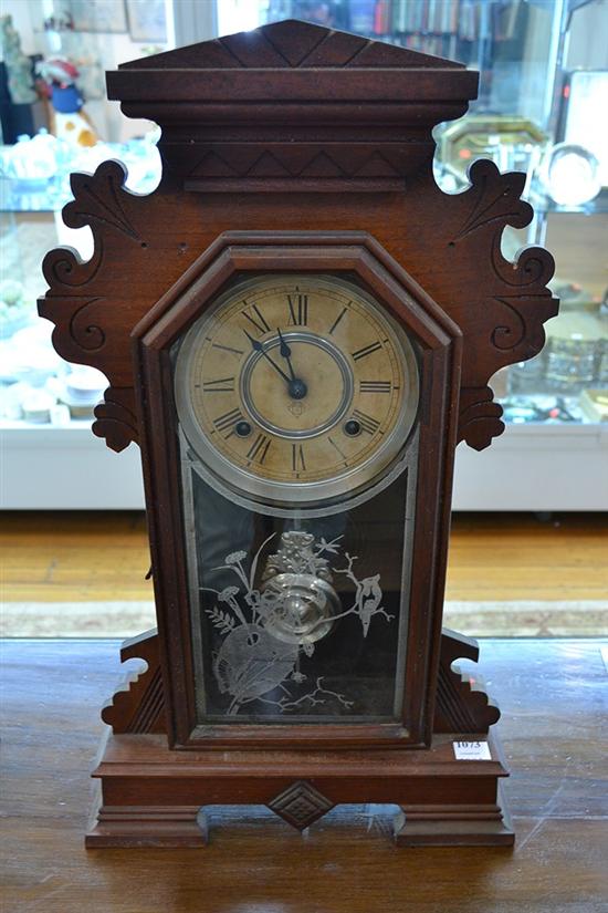 ANSONIA COTTAGE CLOCK WITH BIRD AND FLOWER DECORATION TO GLASS FACE (PENDULUM, KEY)