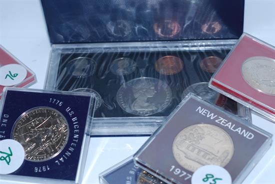 A COLLECTION OF ASSORTED COINS INCLUDING FIRST COINAGE OF WESTERN SOMA AND FIVE ONE DOLLAR COINS TOGETHER WITH A USA BICENTENIAL COIN FROM THE FRANKLIN MINT AND A COLLECTION OF COINS FROM NEW ZEALAND (76 - 87)