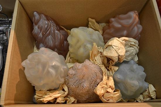 COLLECTION OF SIX ART DECO FLAME SHAPED LIGHT SHADES (FAULTS)
