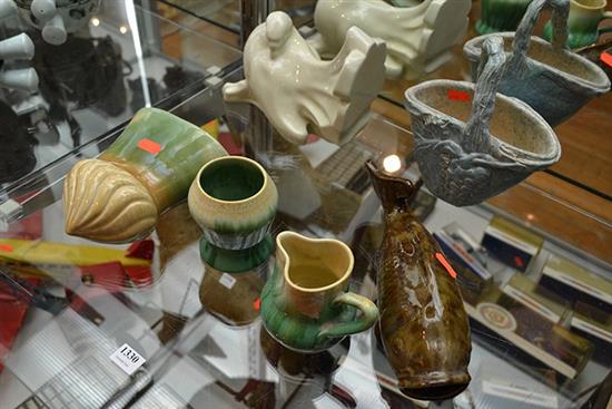 GROUP OF AUSTRALIAN POTTERY INCLUDING REMUED, BENNETT FISH, ATHOL BIRD FIGURE, BASKET ETC