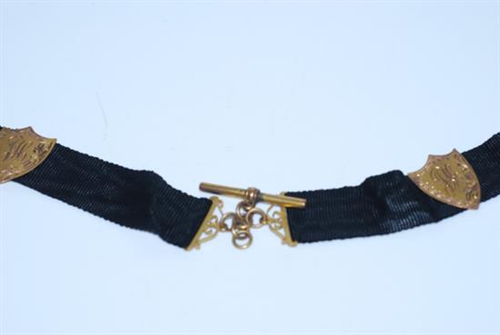 AN ANTIQUE AUSTRALIAN GROSGRAIN ALBERTINA BY WILLIS & SONS PTY. LTD. FITTINGS STAMPED 9CT GOLD.