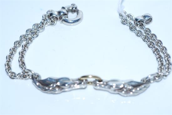 A DOUBLE HORSE DESIGN BRACELET IN STERLING SILVER WITH 18CT GOLD DETAIL