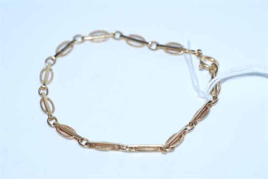 A FANCY LINK BEACELET STAMPED 9CT GOLD