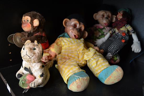 COLLECTION OF TOYS INCLUDING WIND UP MONKEY, MONKEY, PUPPET ETC