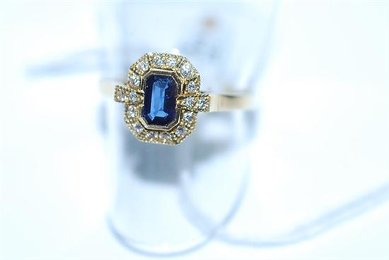 AN OCTAGONAL SAPPHIRE AND DIAMOND CLUSTER RING IN 18CT GOLD