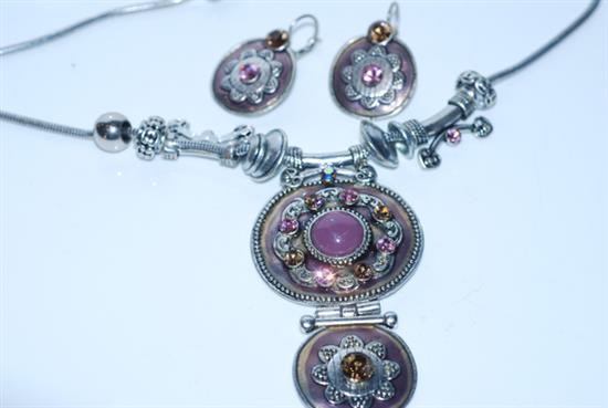 A STONE SET COSTUME NECKLACE AND EARRINGS