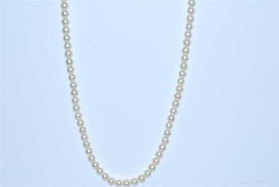 AN OPERA LENGTH STRAND OF CULTURED PEARLS TO A SILVER CLASP