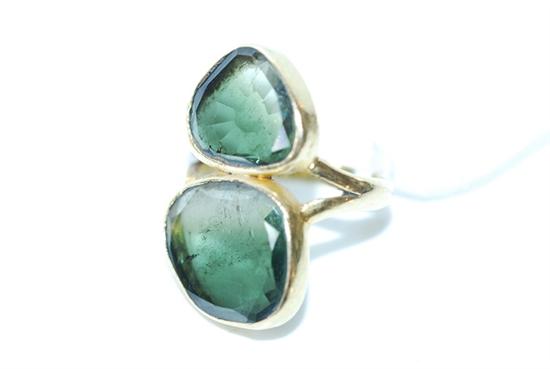 Designed and hand crafted by Pippa Small, the free form polished tourmaline crystal slices, in bezel settings, in 22ct gold, ring size M-N, see notes.