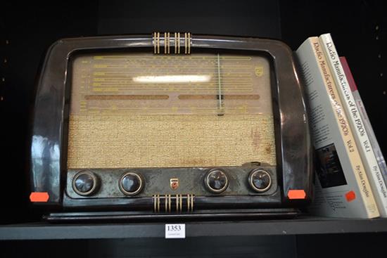 PHILIPS LARGE BAKELITE RADIO WITH THREE BOOKS ON VINTAGE RADIOS