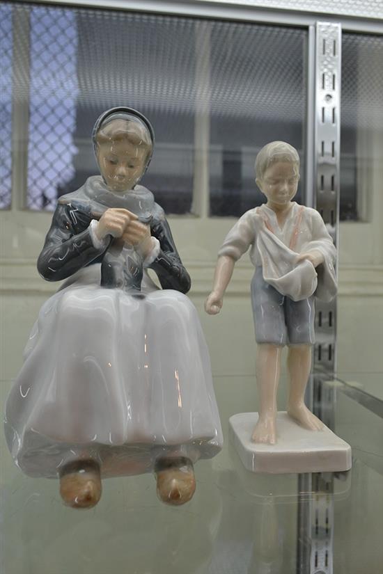 A ROYAL COPENHAGEN FIGURE F A LADY SOWING AND A B + G FIGURE OF A BOY SOWING SEED