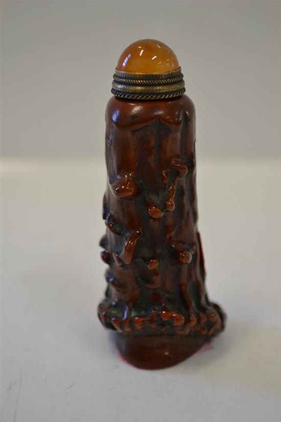 HORN SNUFF BOTTLE WITH STONE STOPPER