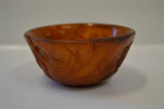 CHINESE HORN BOWL WITH CARVED BAT DECORATION