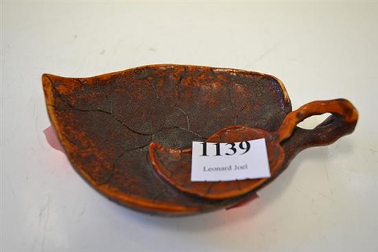 CHINESE CARVED HORN DISH IN THE SHAPE OF A LEAF