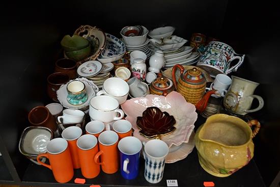 A SHELF OF SSORTED CHINA INCLUDING NORITAKE, RETRO CARLTONWARE