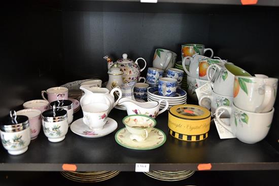A SHELF OF ASSORTED CHINA INCLUDING ROYAL WORCESTER, WILLOW PATTERN ETC