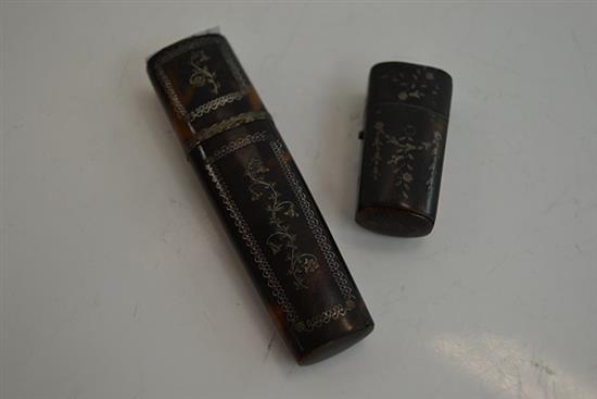 TWO 19TH CENTURY SILVER INLAID TORTOISE SHELL ETUI CASES