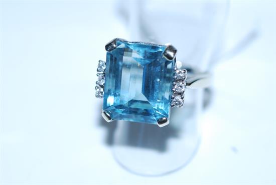 A 10.20CT AQUAMARINE AND DIAMOND DRESS RING IN 14CT WHITE GOLD