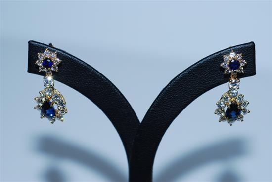 A PAIR OF SAPPHIRE AND DIAMOND DROP EARRINGS IN 18CT GOLD